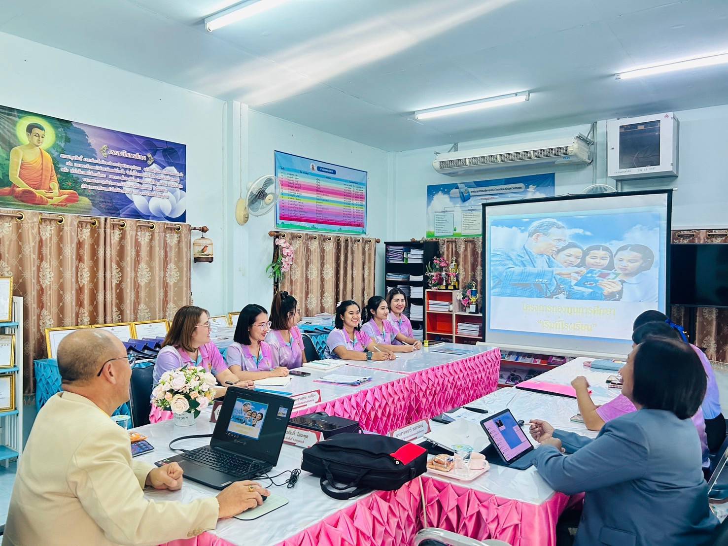 ๑๓ พ.ย.๖๗ อสส.ประจำพื้นที่ และประธานกลุ่มฯได้ดำเนินการประชุม ทบทวนเนื้อหาตามกำหนดการ ในเวลา ๑๕.๐๐ - ๑๗.๐๐ น. ณ รร.บ้านห้วยหวาย ผอ.รร. พร้อมคุณครู จำนวน ๑๐ คน (ครูบรรจุใหม่ ๓ คน) รับทราบและมีความรู้ความเข้าใจแนวทางการดำเนินงานตามนโยบายโรงเรียนโครงการกองทุนการศึกษา และแนว ๓ เสาหลัก ๕ กลยุทธ์ ของ สพฐ. ประจำภาคเรียนที่ ๒ ปีการศึกษา ๒๕๖๗
