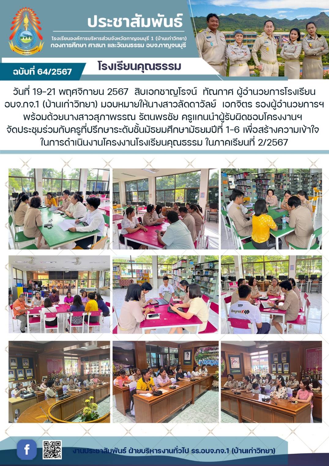 โรงเรียน อบจ.กจ.1 (บ้านเก่าวิทยา) จัดประชุมเพื่อสร้างความเข้าใจในการดำเนินงานโครงการโรงเรียนคุณธรรม 2/2567