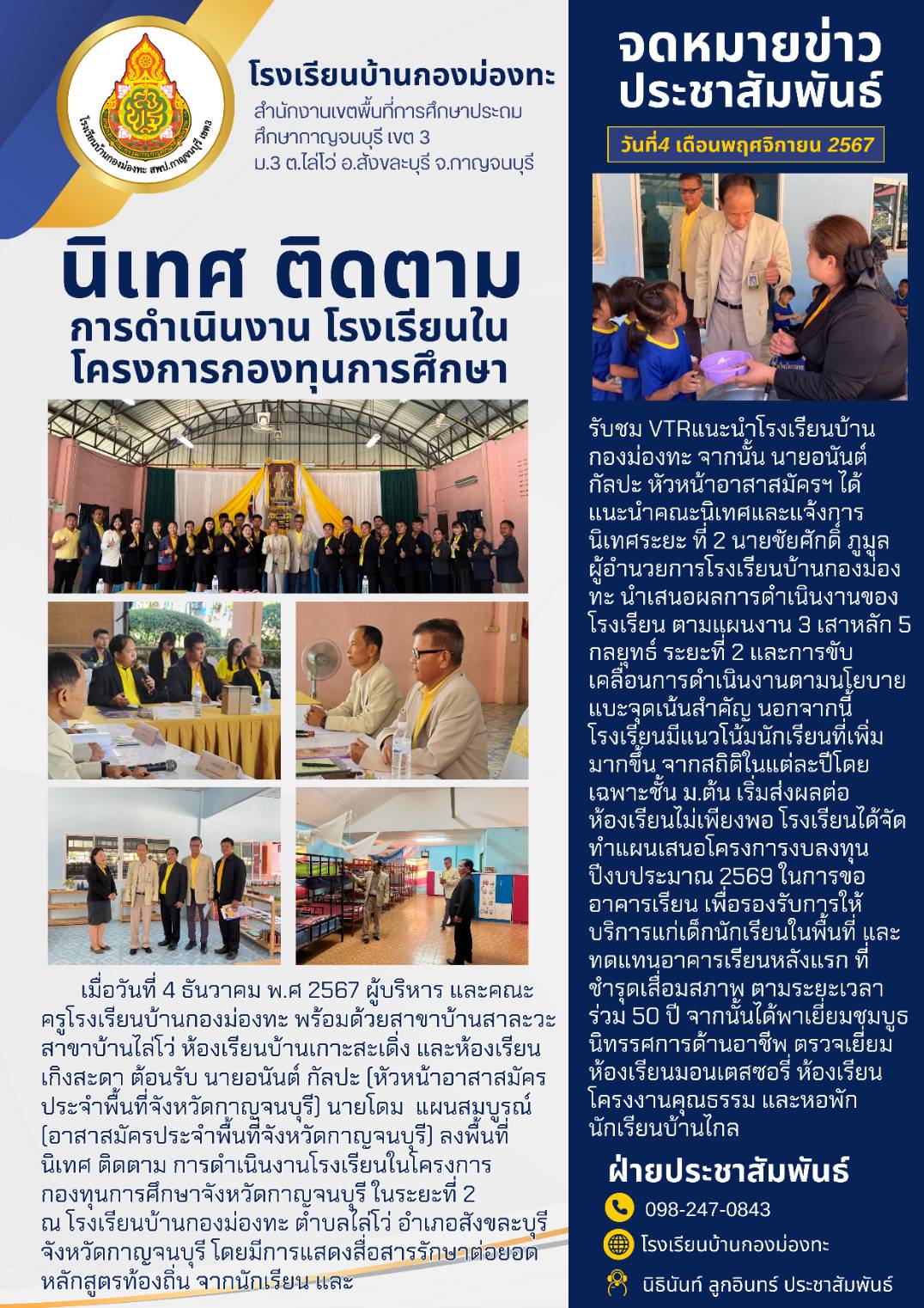 นิเทศ ติดตาม การดำเนินงาน โรงเรียนในโครงการกองทุนการศึกษา