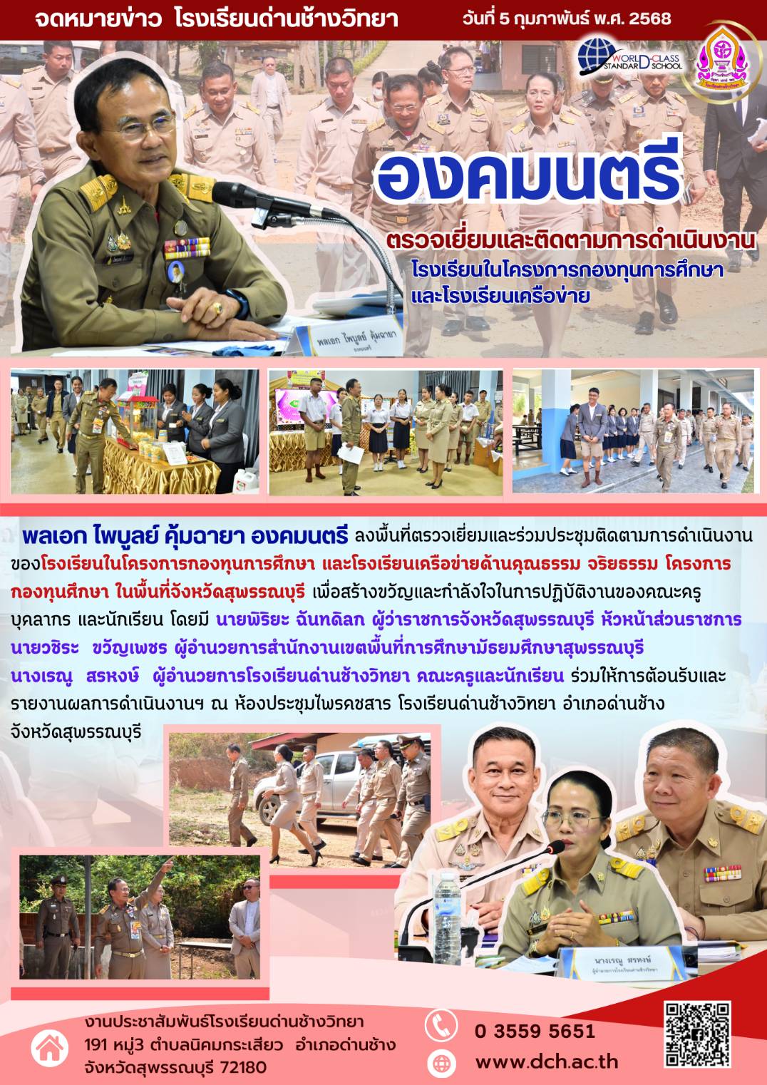 องคมนตรี พลเอกไพบูลย์ คุ้มฉายา ลงพื้นที่ตรวจเยี่ยมและติดตามโครงการกองทุนการศึกษาและโรงเรียนเครือข่าย ณ โรงเรียนด่านช้างวิทยา