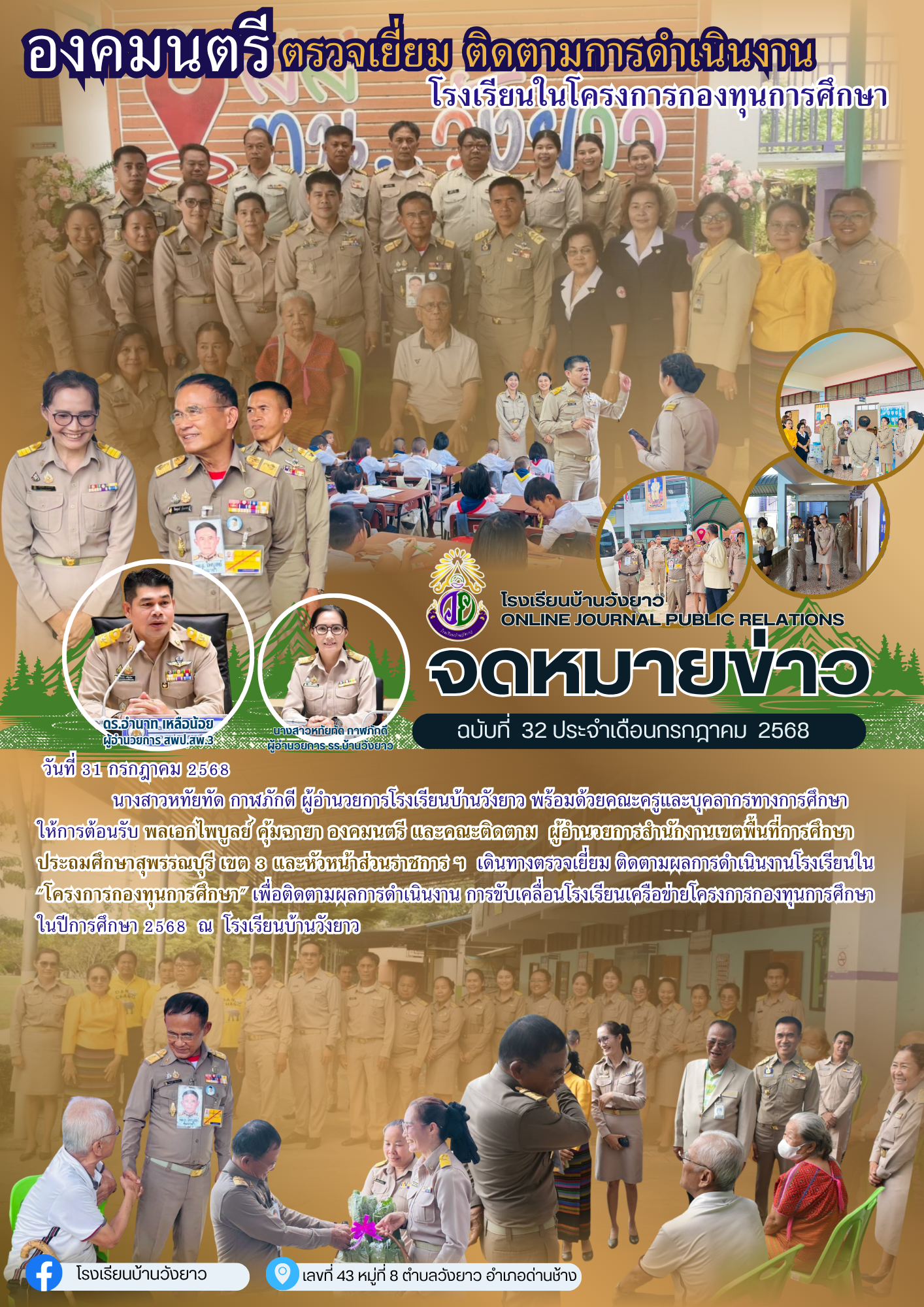พลเอกไพบูลย์ คุ้มฉายา องคมนตรี และคณะ เดินทางตรวจเยี่ยมโรงเรียนบ้านวังยาว เมื่อวันที่ 31 กรกฎาคม 2568 เพื่อติดตามความก้าวหน้าโครงการทองทุบการศึกษา