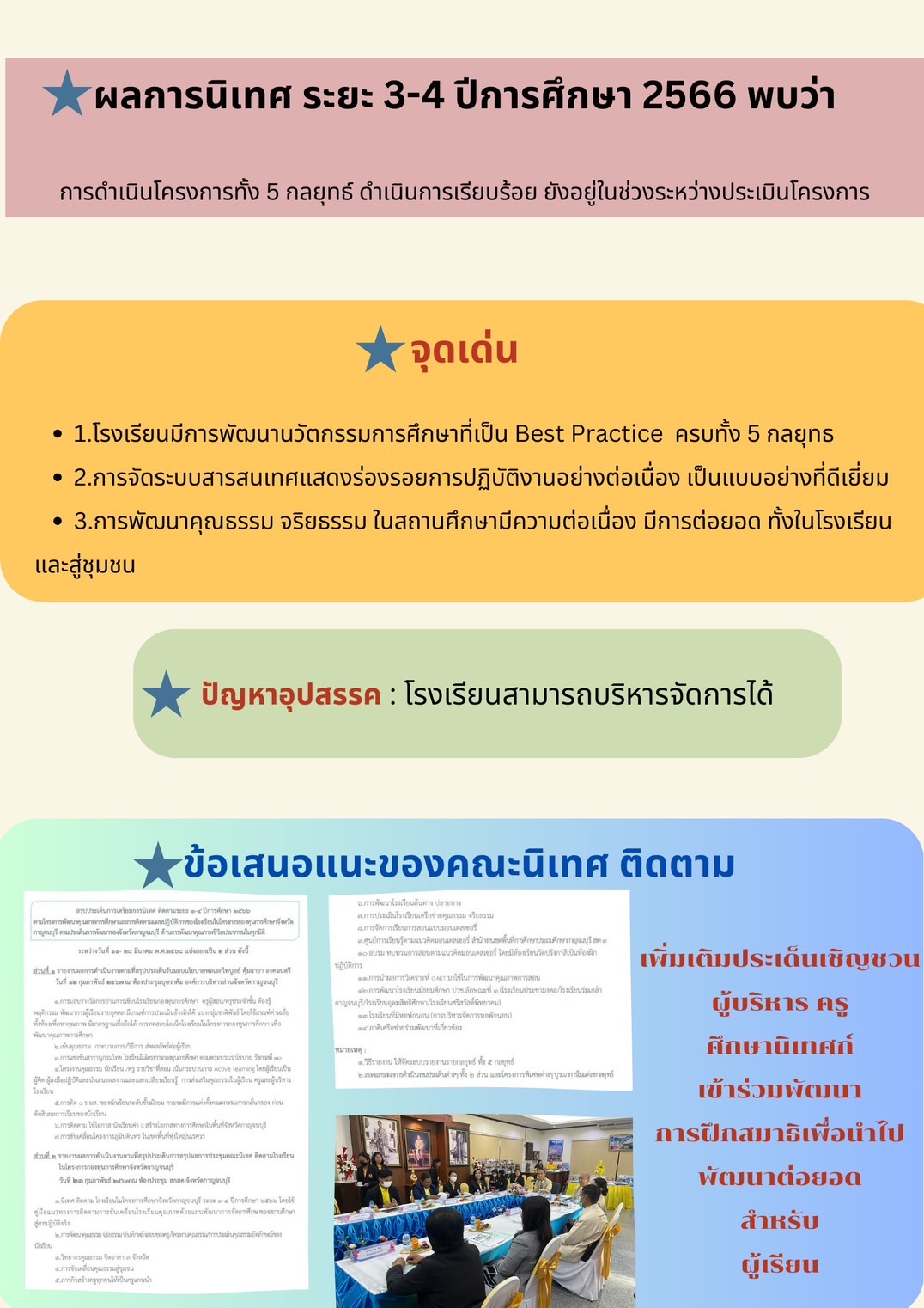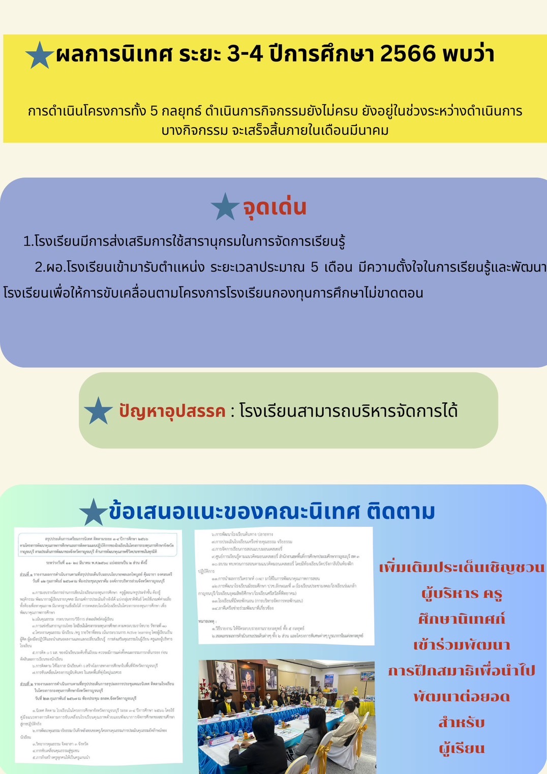 1. การดำเนินงานตามโครงการ ระยะ 3-4 ปีการศึกษา 2566 ทุกโรงเรียนดำเนินการจะเสร็จสิ้นภายในเดือนมีนาคม 2567